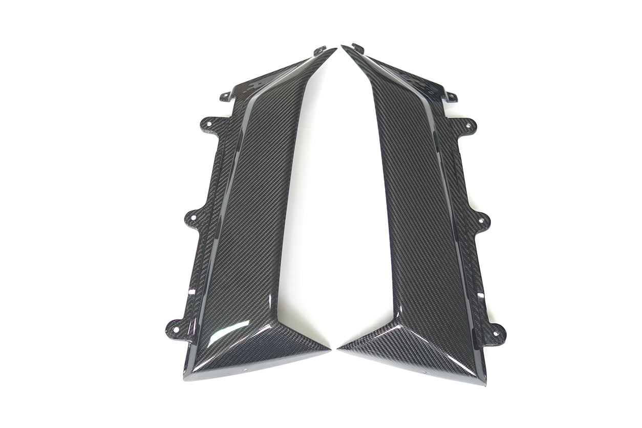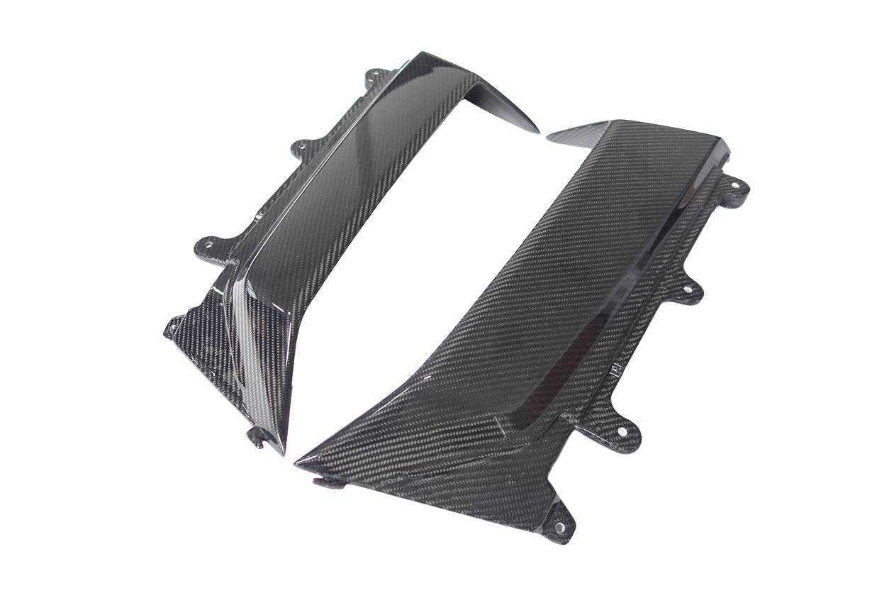 Contenido del paquete: Un par de paneles de ventilación de guardabarros exteriores de fibra de carbono.