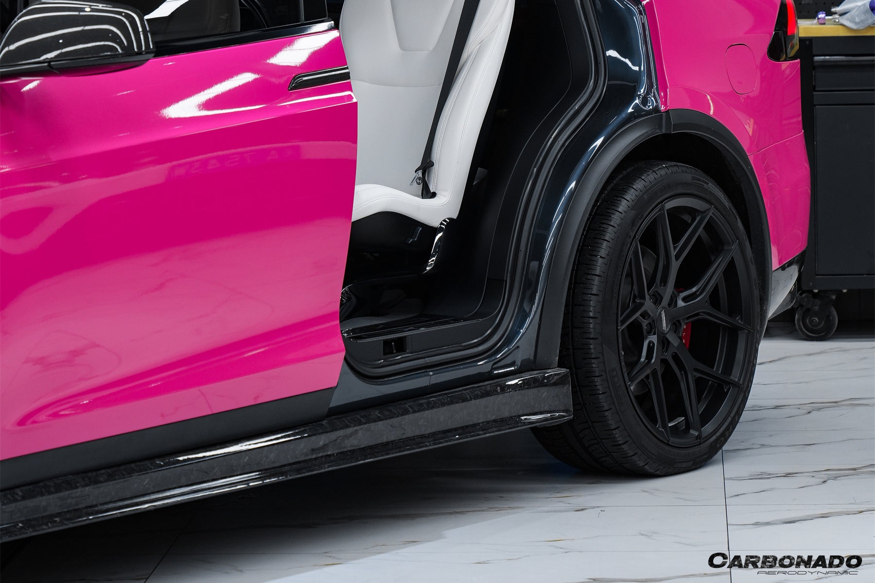 Faldones laterales de fibra de carbono estilo Tesla X SUV RZS Carbonado 2016-2021