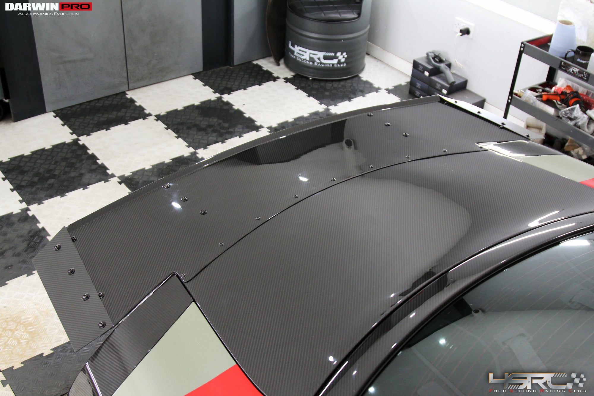 While professional installation is always recommended, the DarwinPRO X 4SRC R1 Drag Spoiler can be installed by users with moderate mechanical experience. Some drilling is required for proper fitment. -
