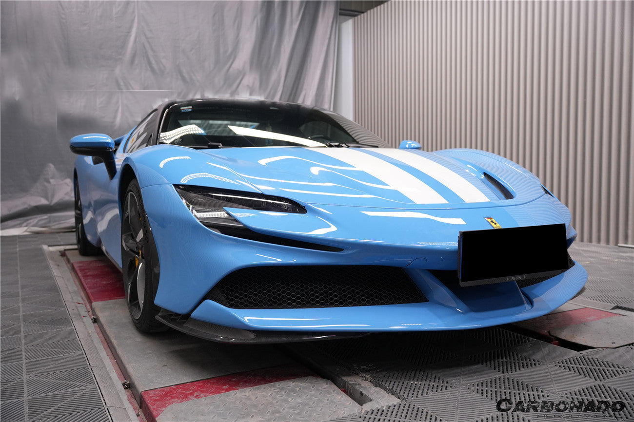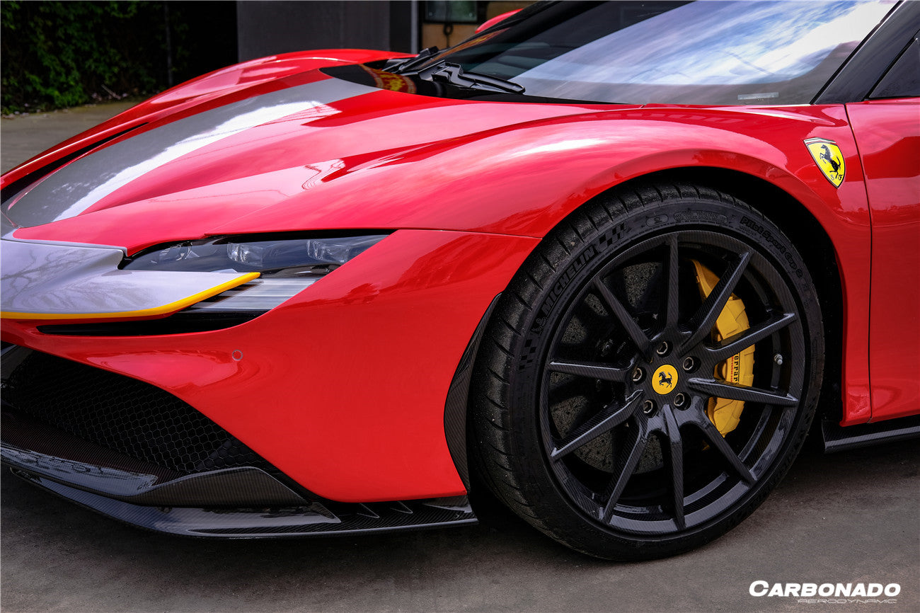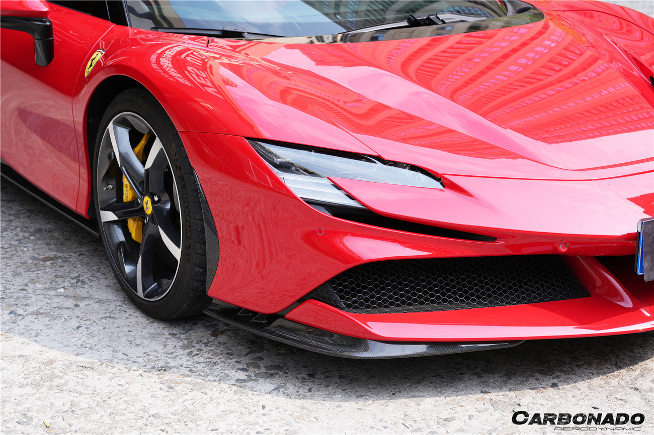 Carbonado 2020-UP Ferrari SF90 Stradale OE Style Autoclave Carbon Fiber Front Bumper Side Trims
