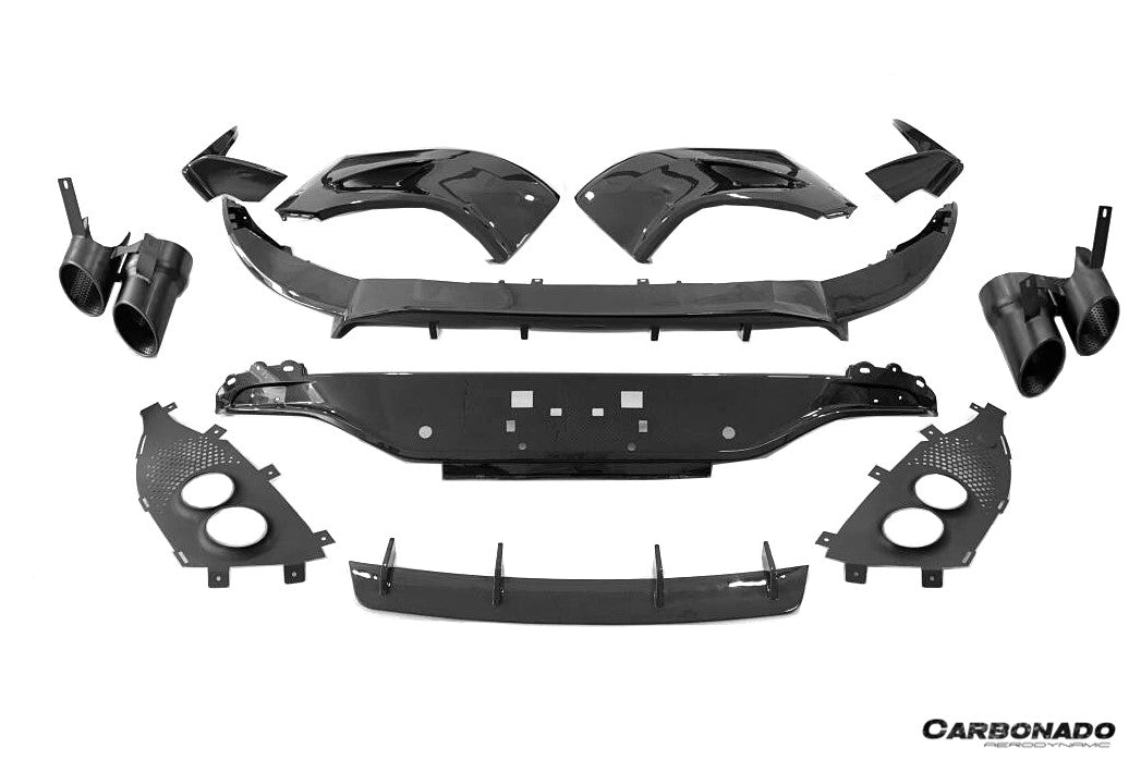 Carbonado 2021-2024 Aston Martin DBX 707 Style Dry Carbon Fiber Rear Bumper w & Exhaust tips