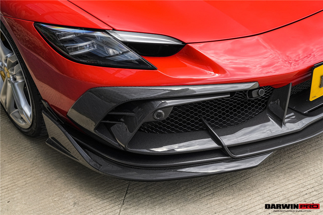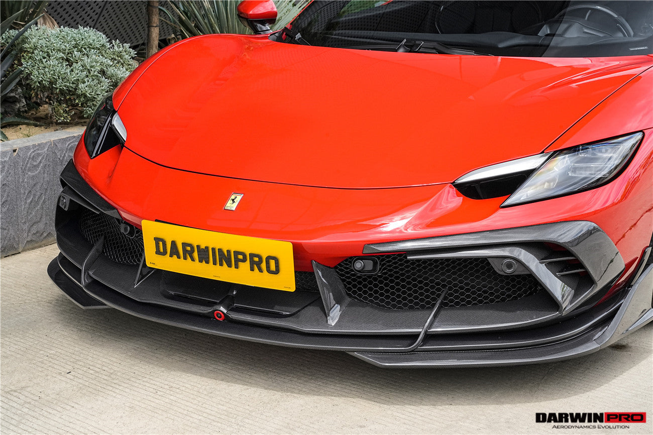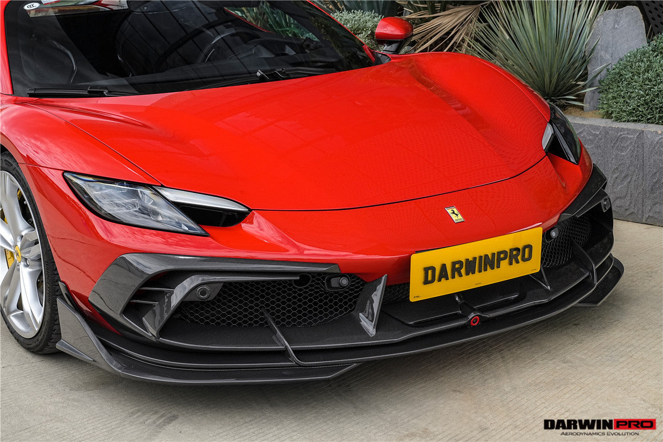 Darwinpro 2022-2025 Ferrari 296 GTB  GTS Type F171 iMP Carbon Fiber Front Bumper Lip Splitter With Camera holes